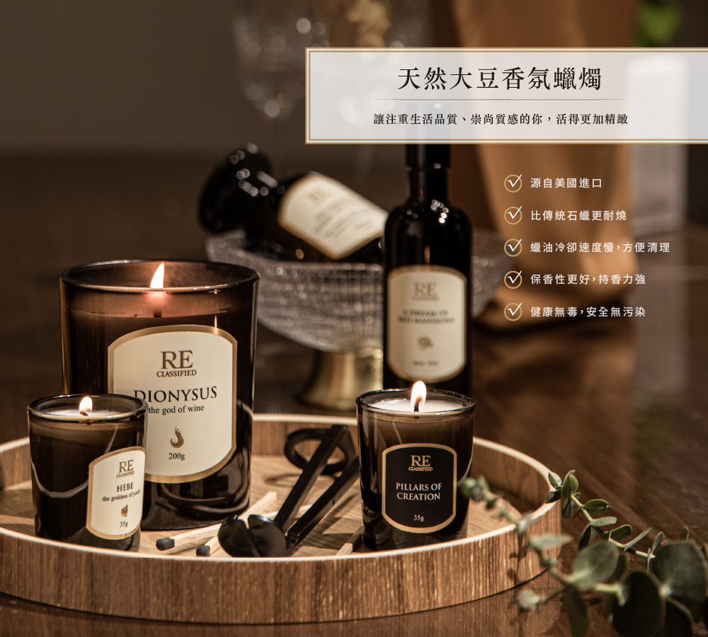 RE調香室香氛蠟燭,採用美國進口的天然大豆蠟,更耐燒、持香性更好,搭配100%純棉無鉛燭芯,健康無毒,天然安全無污染。