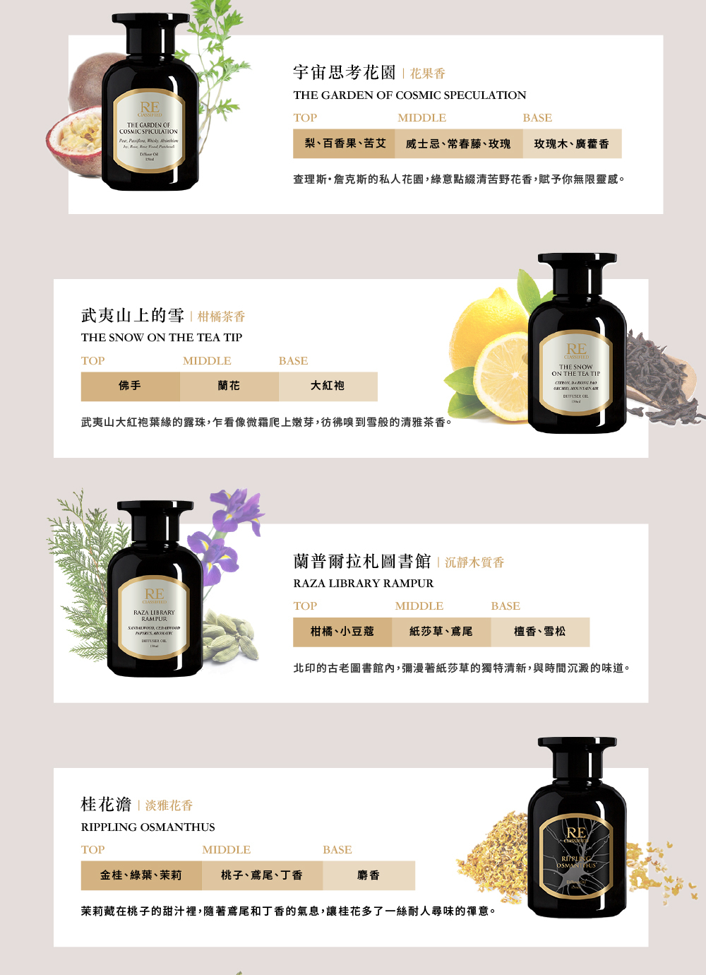 RE調香室|經典居家香氛,多達16種香味任你挑選,來自世界前三大香料廠的頂級原料,通過IFRA認證及MSDS檢測,讓你聞起來舒心、用起來放心。