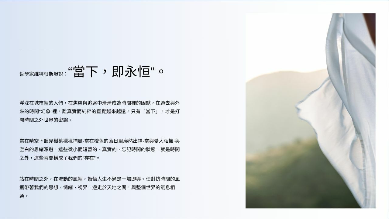 滿目輕紗飛舞 思緒如羽毛般輕盈 等風徐來